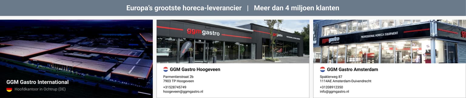In het GGM Gastro netwerk werken meer dan 1200 medewerkers energiek aan de tevredenheid van onze klanten. Alleen zo kunnen we producten van de hoogste kwaliteit aanbieden tegen eerlijke prijzen met een lage prijsgarantie.