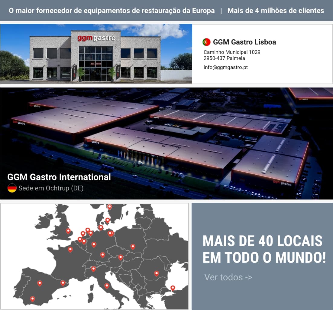 Na rede GGM Gastro, mais de 1200 colaboradores trabalham energicamente para a satisfação dos nossos clientes. Só assim podemos oferecer produtos da mais alta qualidade a preços justos e com garantia de preço baixo.