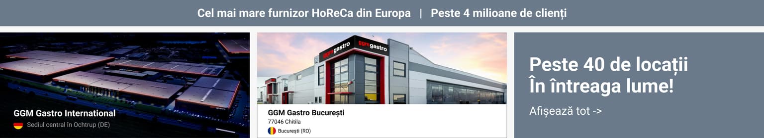 În rețeaua GGM Gastro, peste 1200 de angajați lucrează cu energie pentru satisfacția clienților noștri. Doar așa putem oferi produse de cea mai înaltă calitate la prețuri corecte cu o garanție de preț redus.